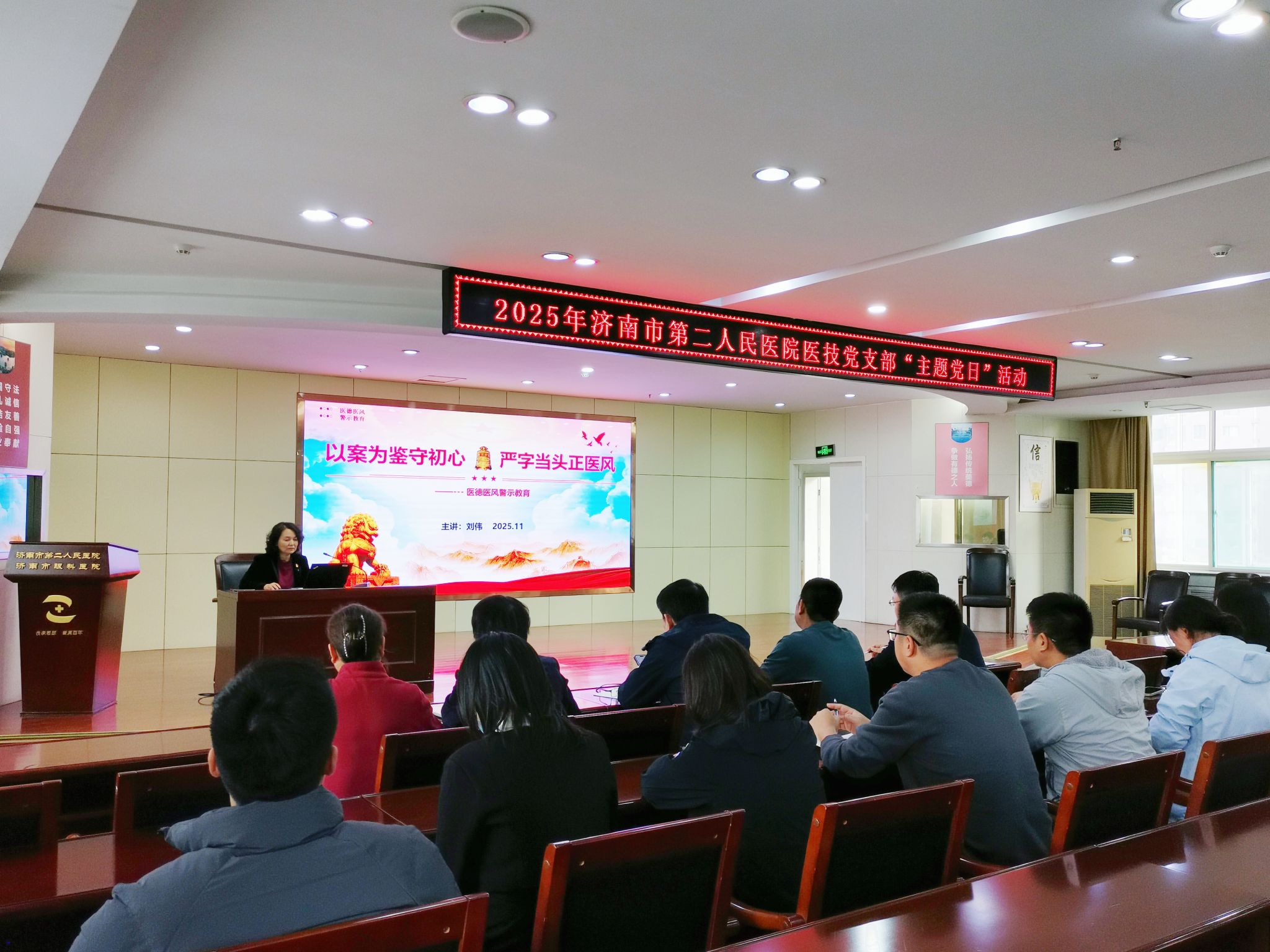 11月6日下午,济南市眼科医院(济南市第二人民医院)医技党支部举办专题党课,主题为“医德医风警示教育:以案为鉴守初心,严字当头正医风”,医院纪委书记刘伟担任主讲,通过讲授专题党课进一步强化医务人员职业道德修养,筑牢拒腐防变的思想防线。