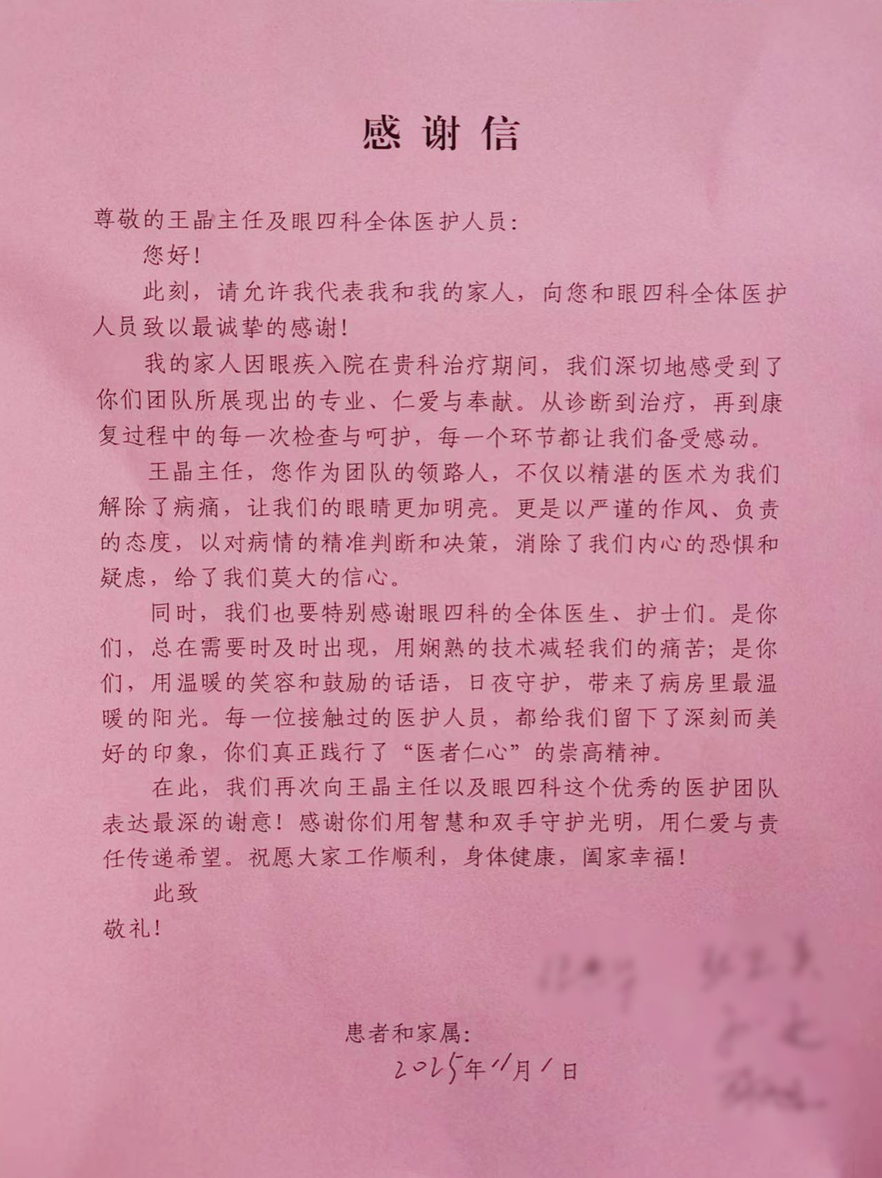 金杯银杯不如群众的口碑。这份来自于医疗同行家属的信赖与认可,更是对市眼科医院(市二院)医疗技术与服务的认可。未来,市眼科医院(市二院)将继续以精准的诊疗、暖心的服务,为更多眼疾患者点亮光明之路。