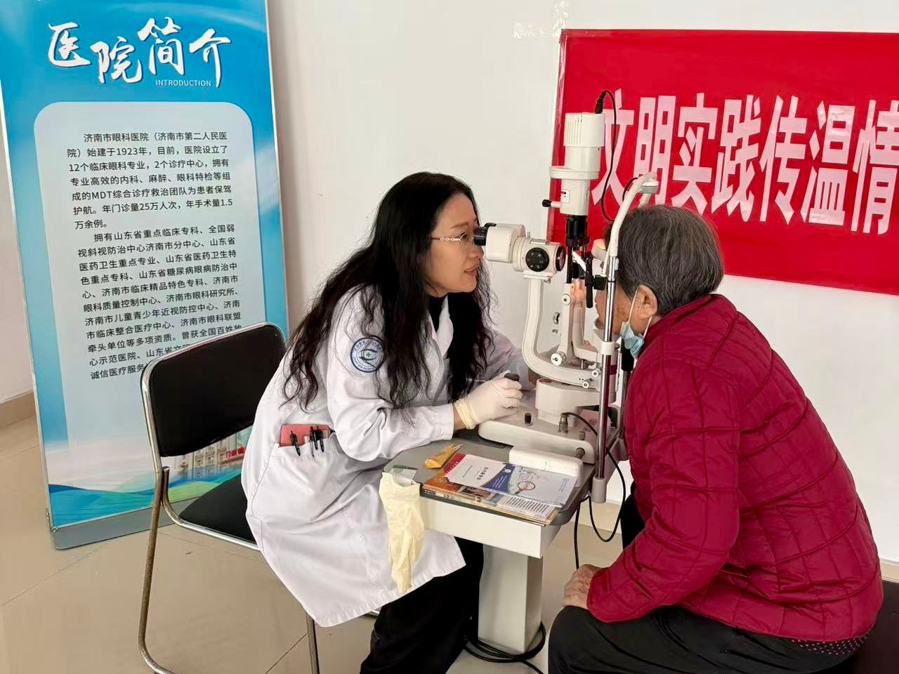 活动现场,面对前来咨询的居民,市眼科医院(市二院)的眼七科(白内障二科)主任医师吴雪莲,眼十科(中医眼科)副主任医师陈丽丽为居民们提供了免费的视力筛查、裂隙灯检查等服务。她们耐心解答了居民们关于用眼习惯、眼病预防等方面的疑问,针对老花眼、白内障等常见问题给出个性化的建议,同时向居民们普及了科学护眼、定期检查的重要性,并现场发放了护眼知识手册,让居民们在家门口就享受到了专业的眼科医疗服务。
