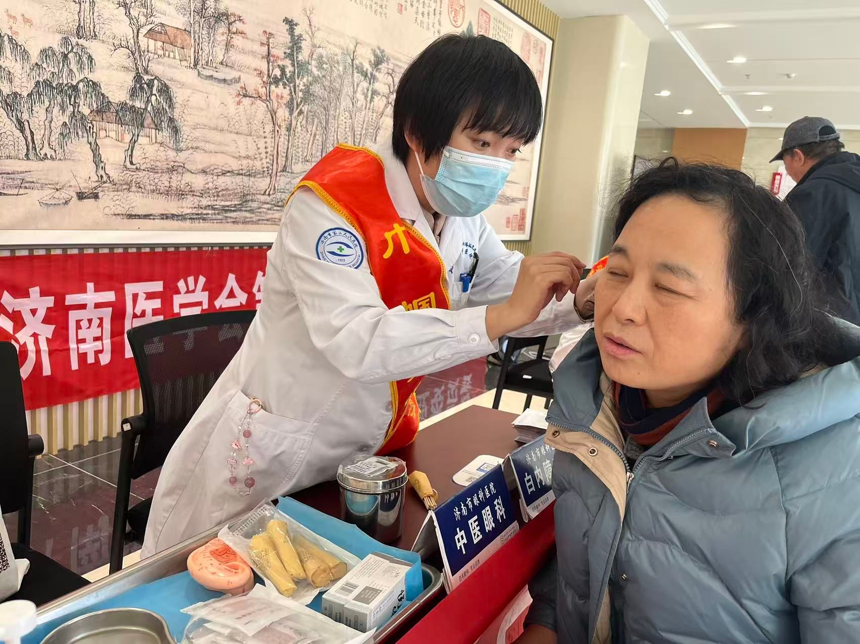 活动当天,市眼科医院(市二院)充分发挥眼科专业优势,选派了由眼四科(白内障一科)副主任医师党惠、眼二科(眼底病专业)主治医师龚斌和眼十科(中医眼科)主治医师杨奕等组成专家团队,前往济南老年人大学开展健康义诊。活动内容丰富多样,涵盖了眼科检查及诊疗、现场咨询、干眼操教学、中医特色疗法体验等多个环节。