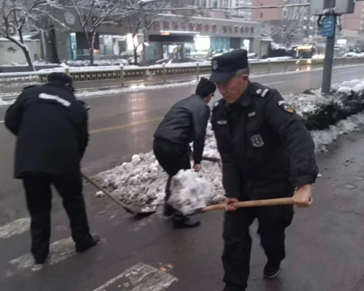 扫雪队伍准备充分,分工明确,配合默契,及时对医院各干道、门诊楼前、停车场、坡道台阶等关键区域进行彻底清理,并同步铺撒防滑物料。