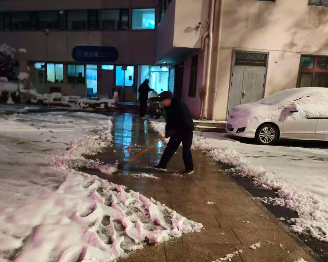 12月12日下午起,济南迎来入冬以来的首场降雪。为确保医院内道路畅通,保障群众就医安全,济南市眼科医院(济南市第二人民医院)迅速启动应急预案。12日傍晚至今晨,医院各部门工作人员连夜开展扫雪融雪行动。