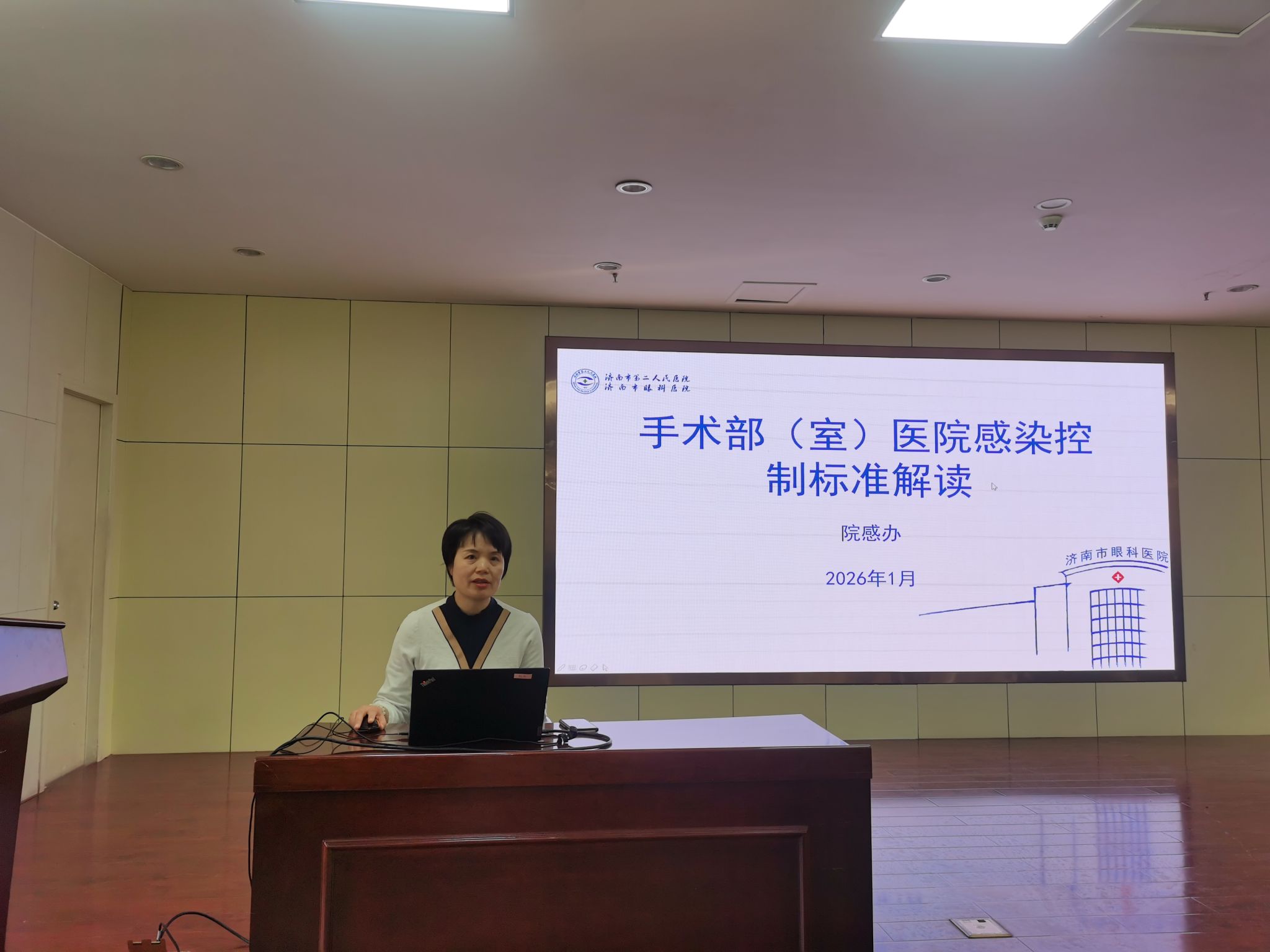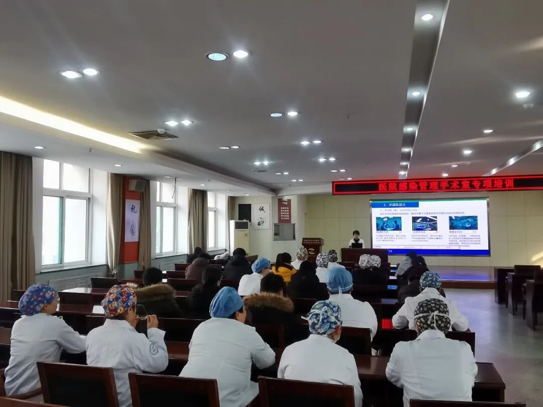 为进一步规范手术室诊疗操作流程,强化医护人员医院感染防控意识,防范化解手术环节院感风险,切实保障患者就医安全与医务人员职业健康,1月6日,济南市眼科医院(济南市第二人民医院)在门诊病房楼七楼大会议室组织开展了医院感染管理手术室专题培训活动,手术室、屈光手术中心等多部门人员参与培训。