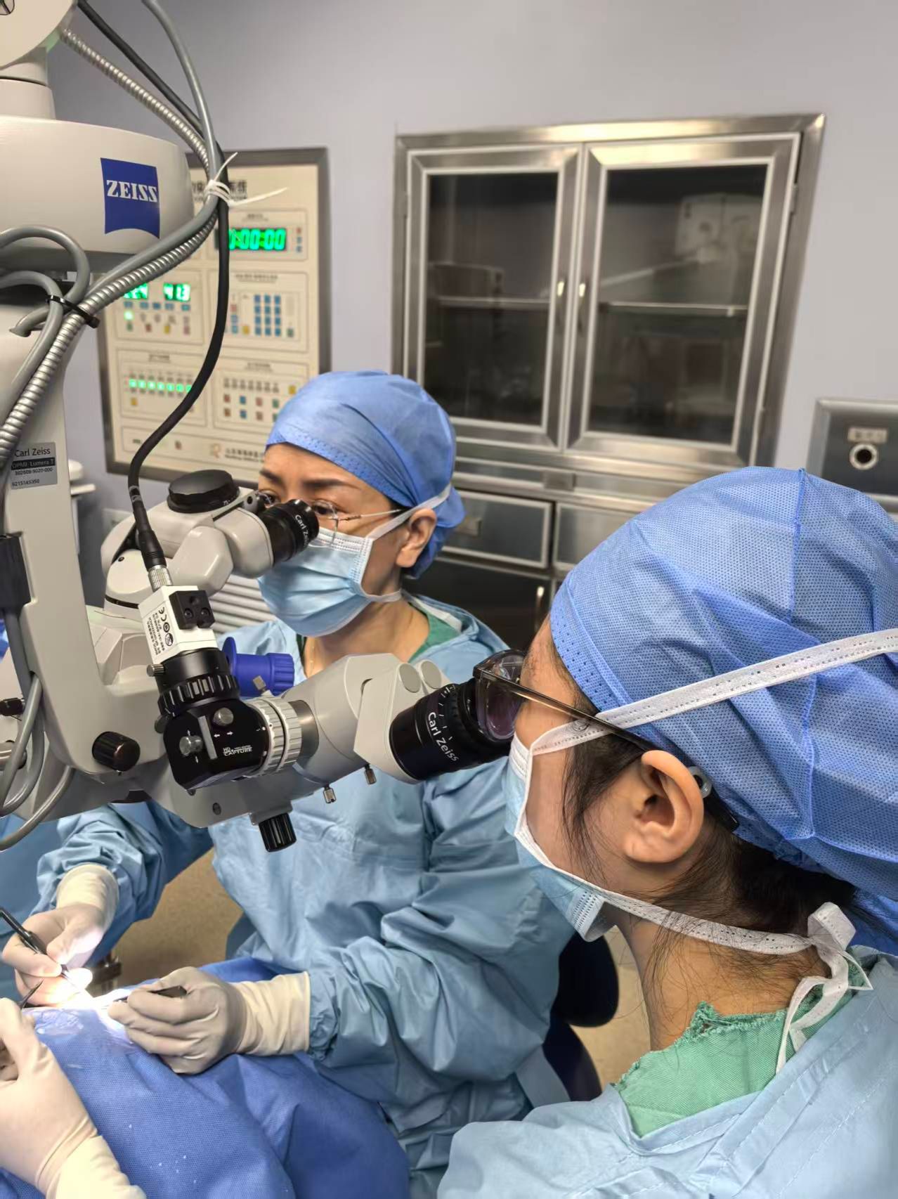 面对如此复杂危重的病情,青光眼科组织了术前讨论。患者眼部条件极差,多次手术史导致结构紊乱,持续高眼压对视神经构成持续性损害,必须尽快进行有效干预。传统单一手术方式难以破解恶性青光眼的多重机制。经过缜密评估,以张苗苗主任医师、孙中华副主任医师为核心的手术团队为徐奶奶“量眼定制”了联合手术方案:右眼小梁切除术联合前部玻璃体切除术。