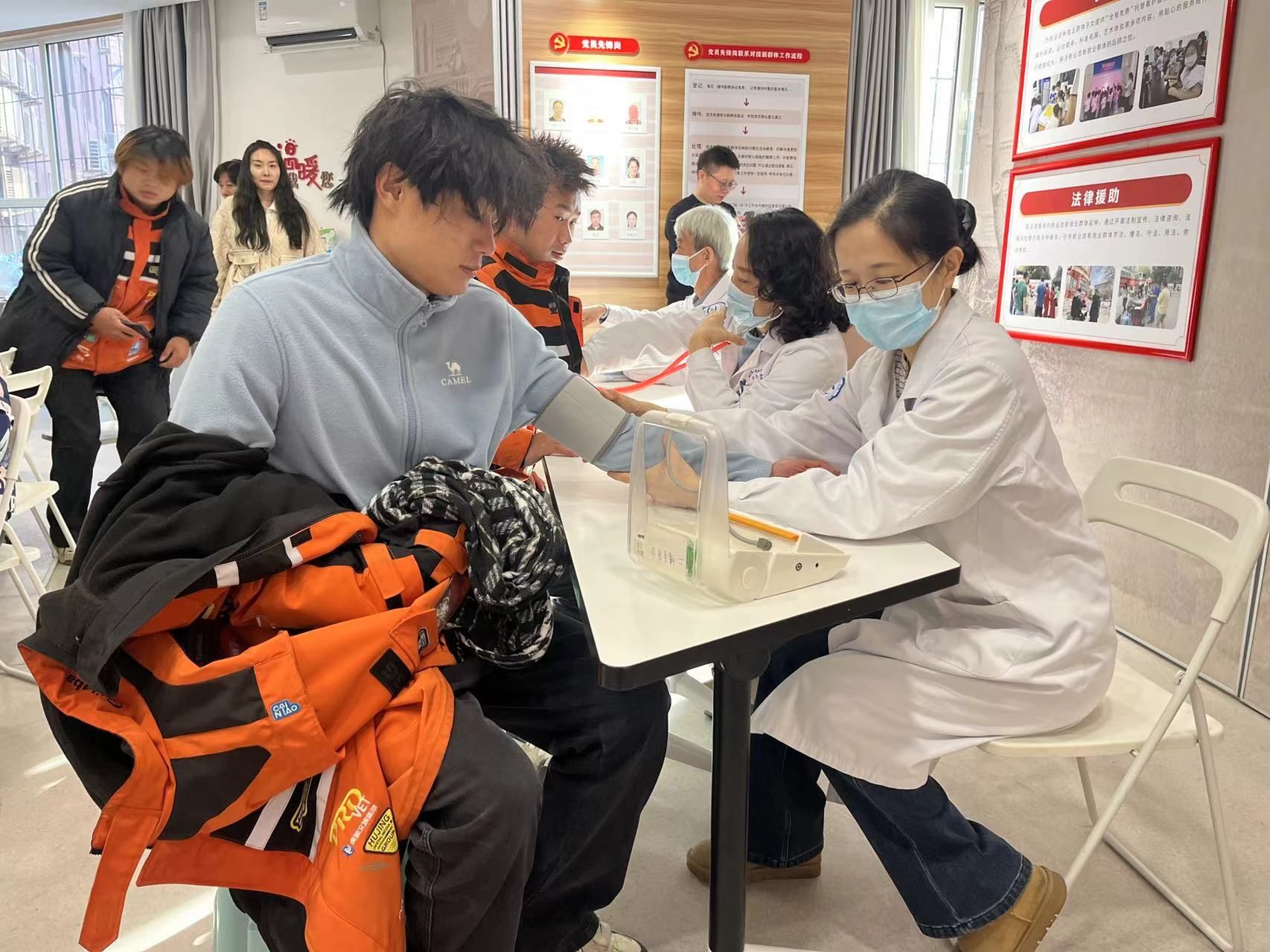到达社区后,义诊活动迅速拉开帷幕。市眼科医院(市二院)内科、口腔科的医护人员们迅速投入到工作中,为外卖小哥进行了血压、心肺功能、口腔等方面的细致检查。除了专业的检查,医护人员们还为他们提供了健康咨询服务。他们用通俗易懂的语言,普及健康知识,传授日常保健方法,引导大家树立正确的健康观念。一位外卖师傅感慨地说:“这样的义诊活动太贴心了,让我们在寒冷的冬日感受到爱和温暖,太感谢你们了!”