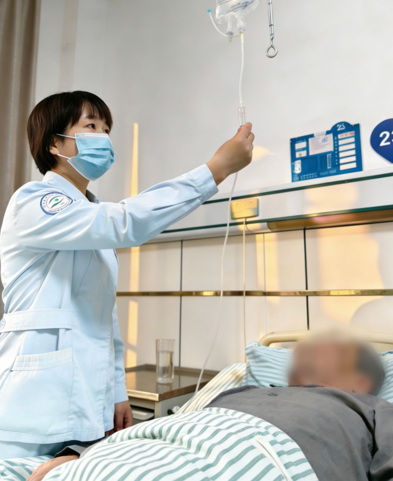 面对传统治疗如激素冲击效果有限且副作用明显的困境,市眼科医院(市二院)眼三科医师团队经过详细评估,为张大叔制定了个体化的创新方案——采用靶向药物进行治疗。在治疗室里,护士细致地为张大叔建立静脉通路,并全程监护输液过程。