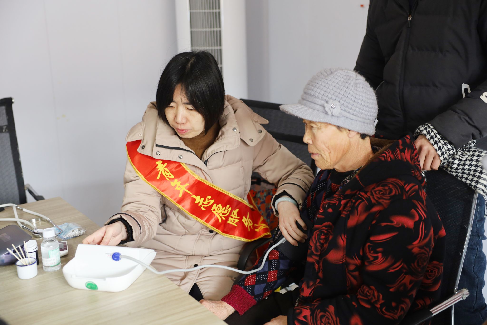 与此同时,医院青年文明号志愿服务队同步开展“青年文明号助千家”健康服务活动。青年志愿者们充分发挥专业优势,为村民提供了贴心的健康服务:仔细为村民测量血压、血糖,耐心进行脉诊,尤其针对患有糖尿病的村民,专门开展眼底检查,细致讲解糖尿病眼底病变的预防与护理知识。志愿者们用通俗易懂的语言解答村民的健康疑问,用温暖贴心的话语拉近与群众的距离,用专业严谨的服务守护村民的眼部健康,让村民足不出村就能享受到优质的医疗服务,真切感受到党的关怀与医院的温情。