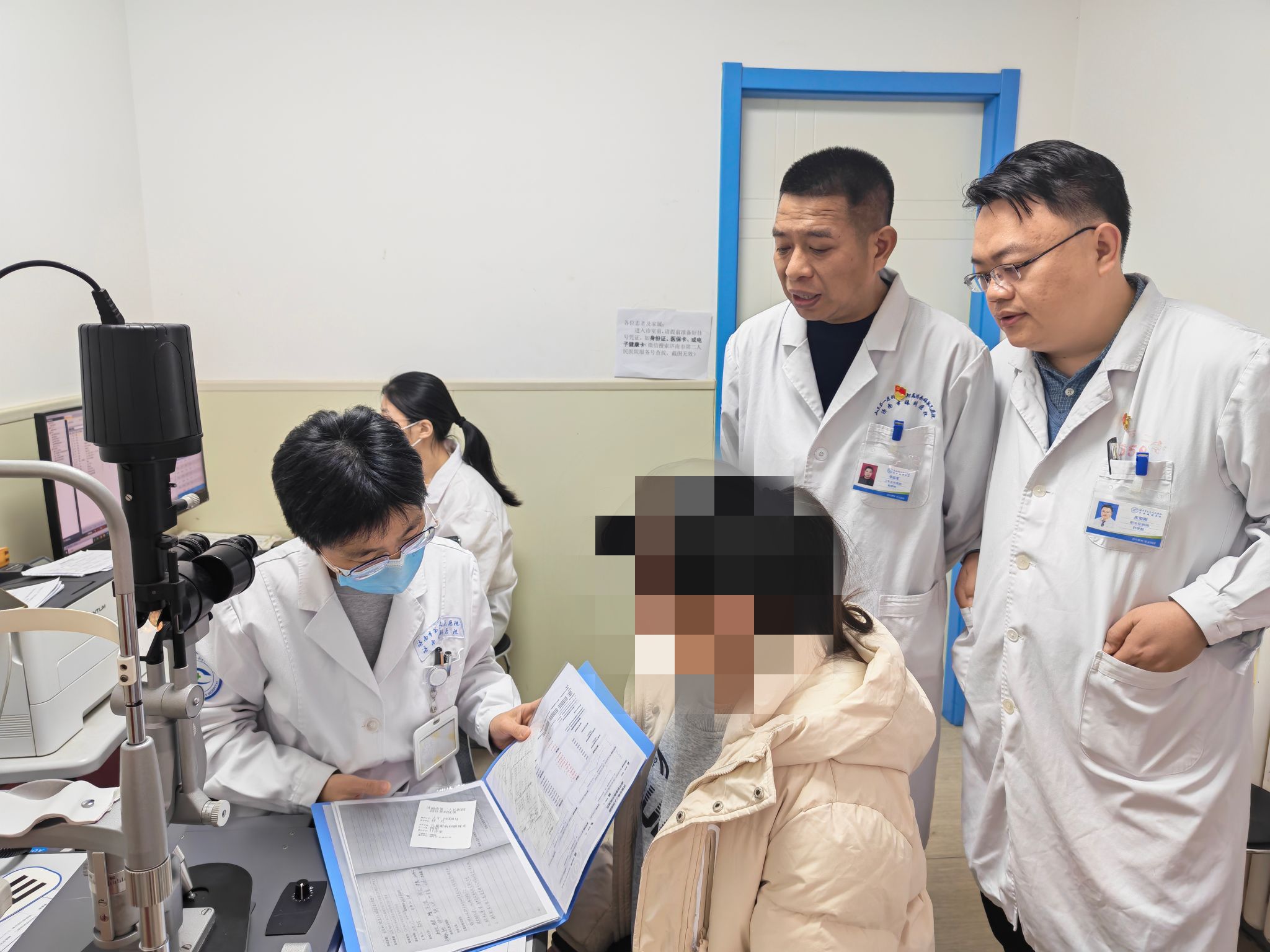 为守护孩子的清晰“视”界,支部专门邀请医院眼五科(小儿眼病专业)主任医师杨珺为好好进行了全面的视力检查,并完善了之前的屈光发育档案。活动最后,在党员们的陪伴下,好好参观了医院的部分科室。党员们用通俗易懂的语言向她介绍了医疗设备的功能与医护人员的日常工作,在她心中播下了探索医学知识的种子。