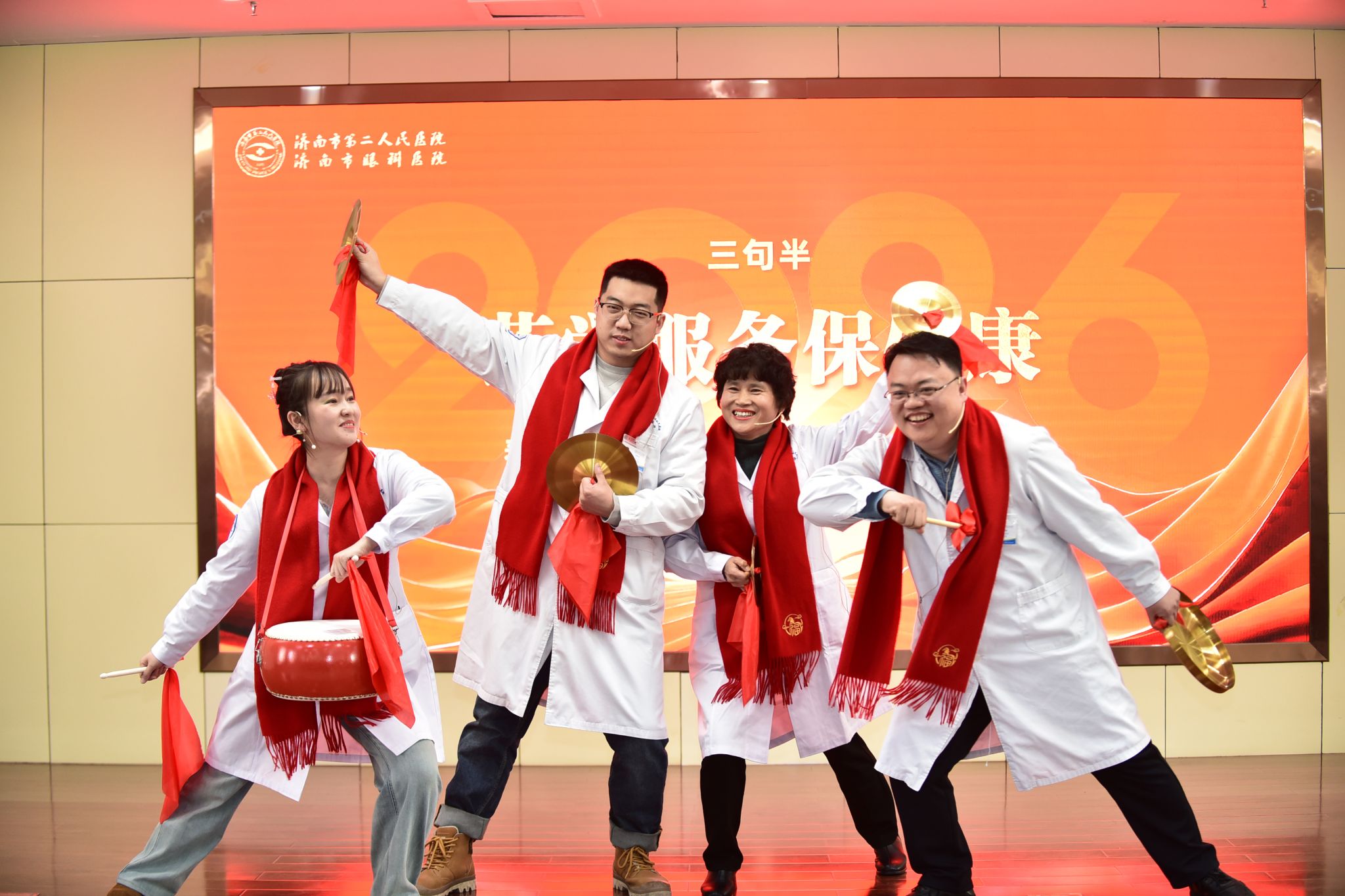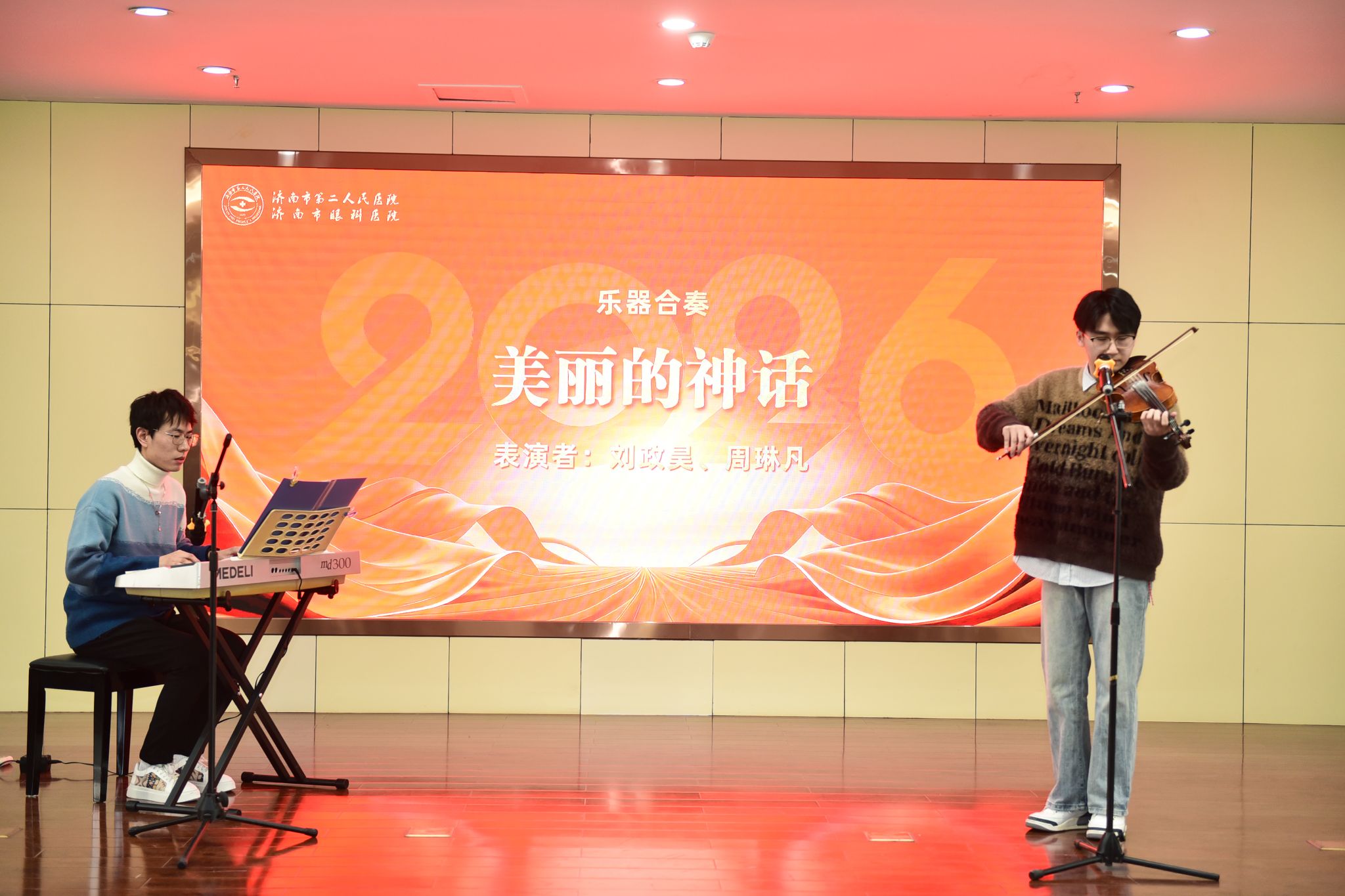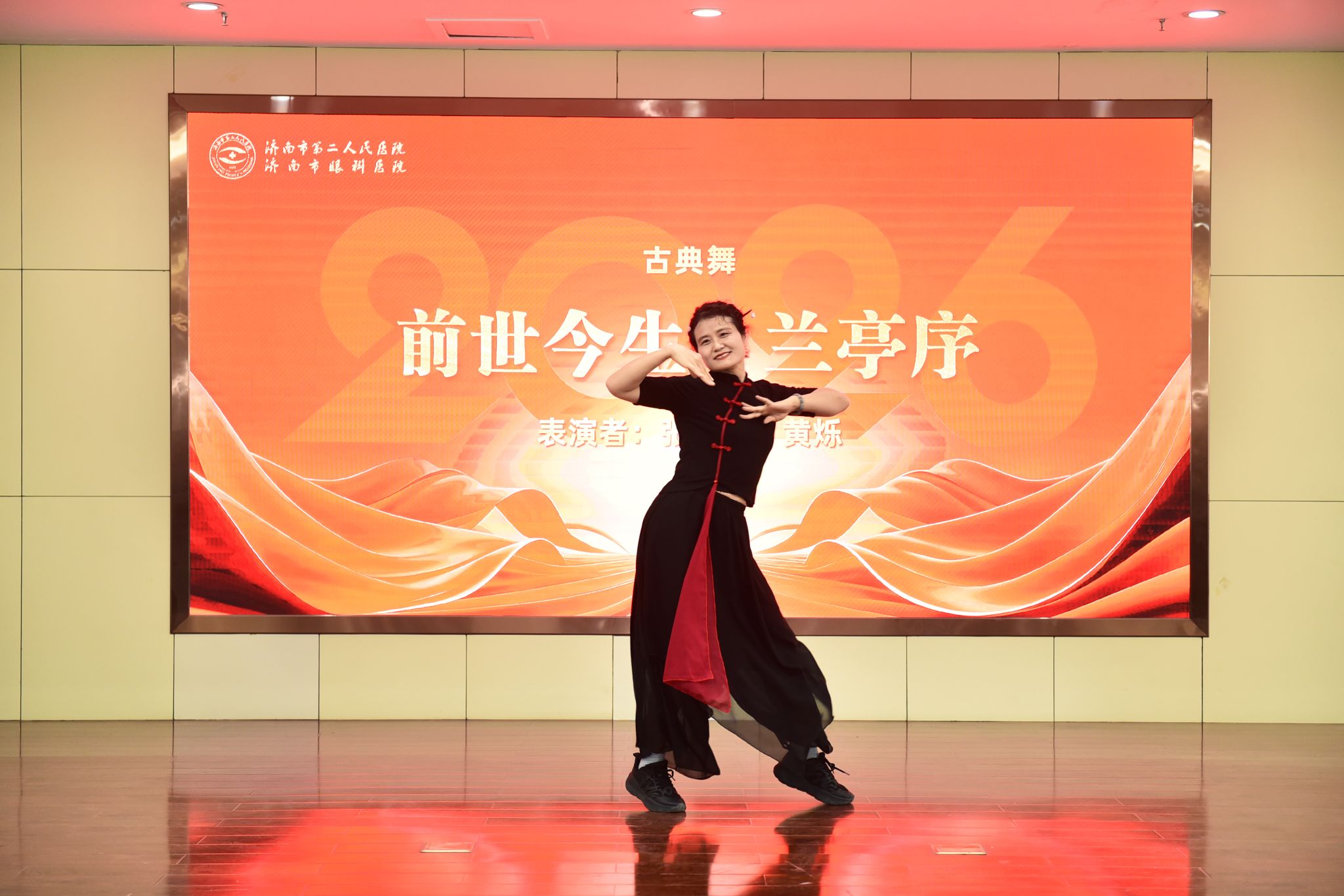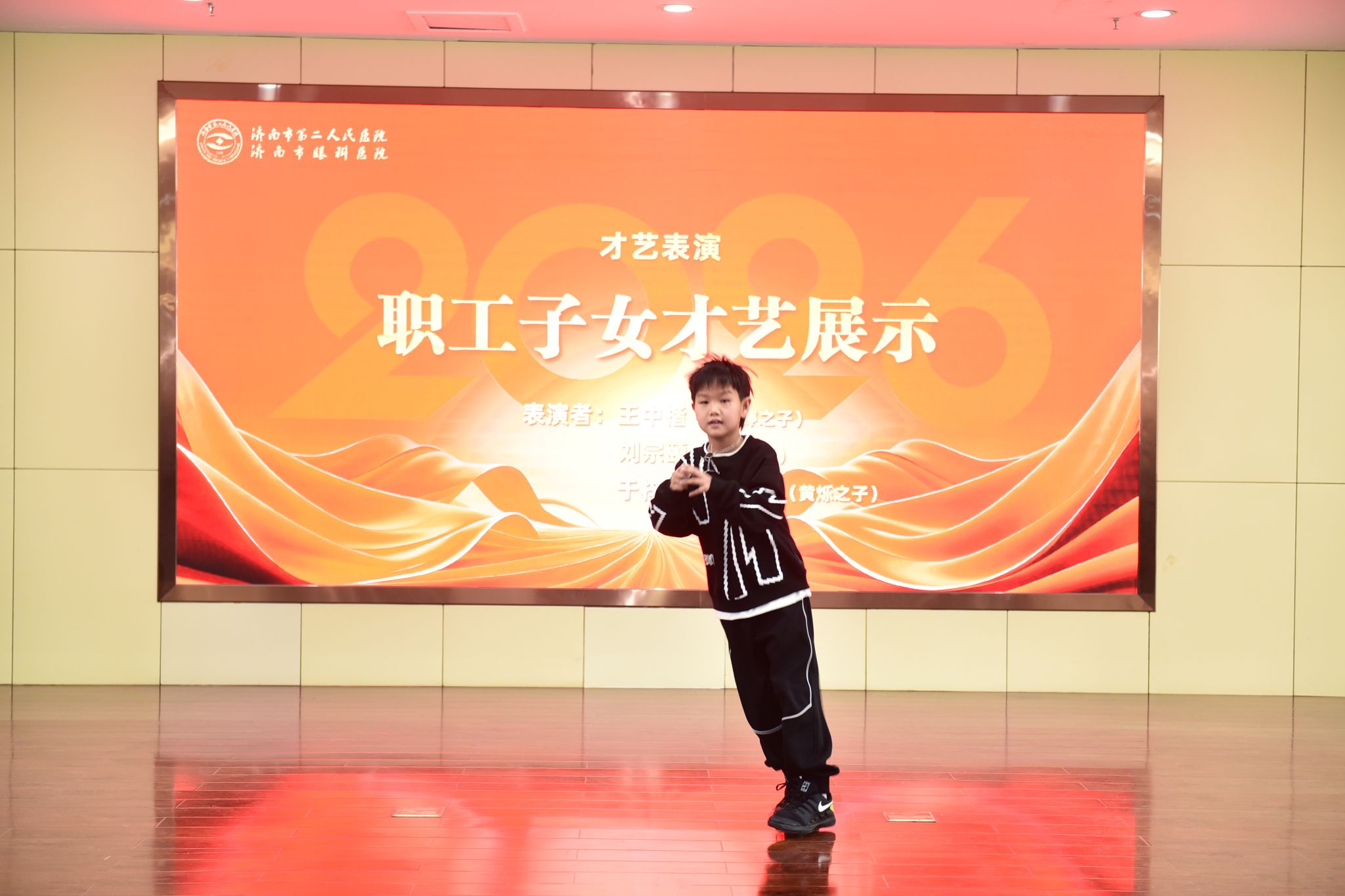 联欢会在开场舞蹈《奔腾2026》中拉开帷幕,形式多样、精彩纷呈的节目轮番登场。小品《红栓栓寻亲记》、相声《上班路上奇遇记》、脱口秀《俺科那些事》、三句半《药学服务保健康》等语言类节目将医务人员的日常工作生活融入作品中,逗得观众开怀大笑;《流行歌串烧》、器乐表演《神话》《浏阳河 歌颂毛主席》、歌曲《精忠报国》《你曾是少年》,旋律动人,展现了歌手扎实的音乐基础;幽默舞蹈《被套舞》、古典舞《兰亭序·前世今生》,让观众眼前一亮;职工子女才艺展示环节,小朋友们用精彩表演为活动增添了蓬勃朝气。