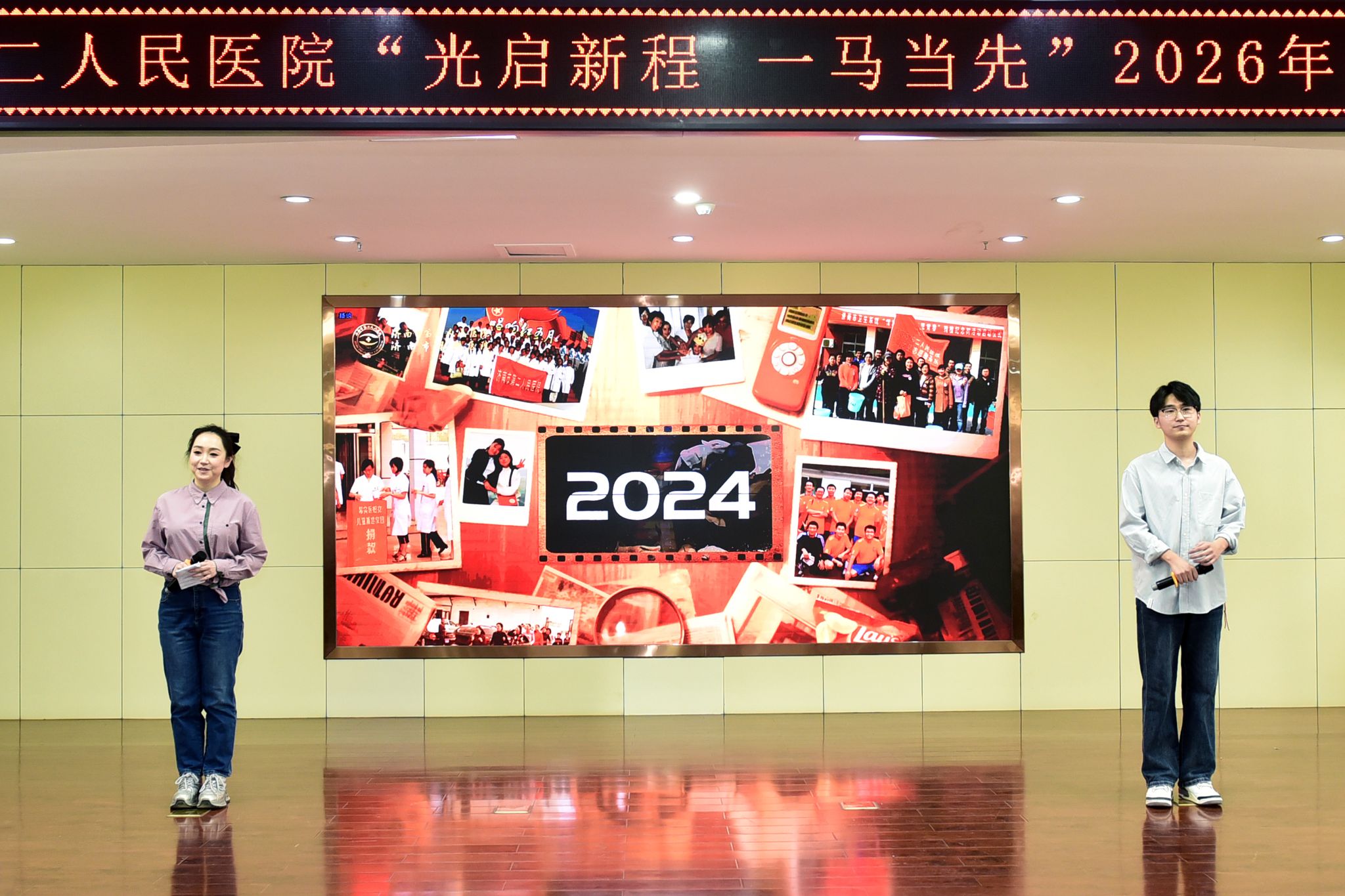 医院院长刘军发表致辞,向全院干部职工致以新春的问候与美好的祝愿。他回顾了2025年医院在党建、医疗服务、专业发展以及公益等方面取得的成绩,对全体干部职工的辛勤付出表示肯定,感谢职工家属的理解与支持。他勉励全院干部职工继续保持昂扬的斗志、务实的作风,共同书写二院的美好未来。