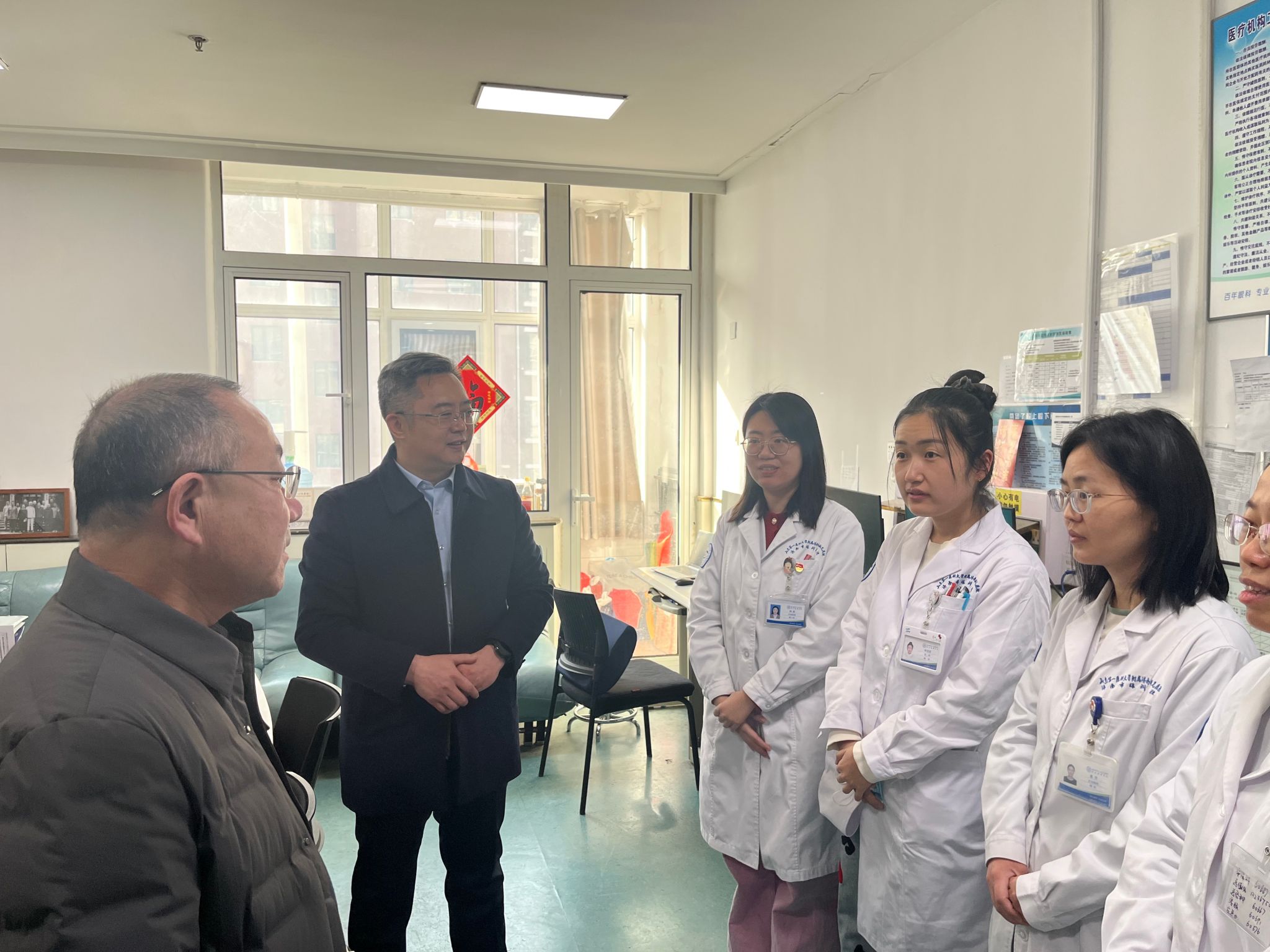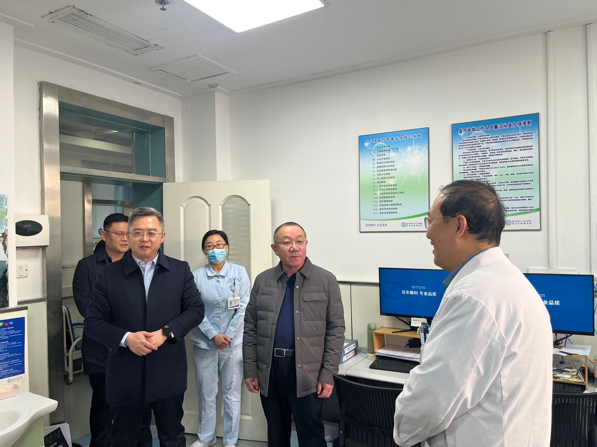 为切实做好春节期间医疗服务与安全生产工作,2月12日上午,济南市眼科医院(济南市第二人民医院)党委书记东光国、院长刘军、副院长王旭带领相关职能科室负责人开展节前综合行政查房,并向一线科室医务人员送去新春祝福。