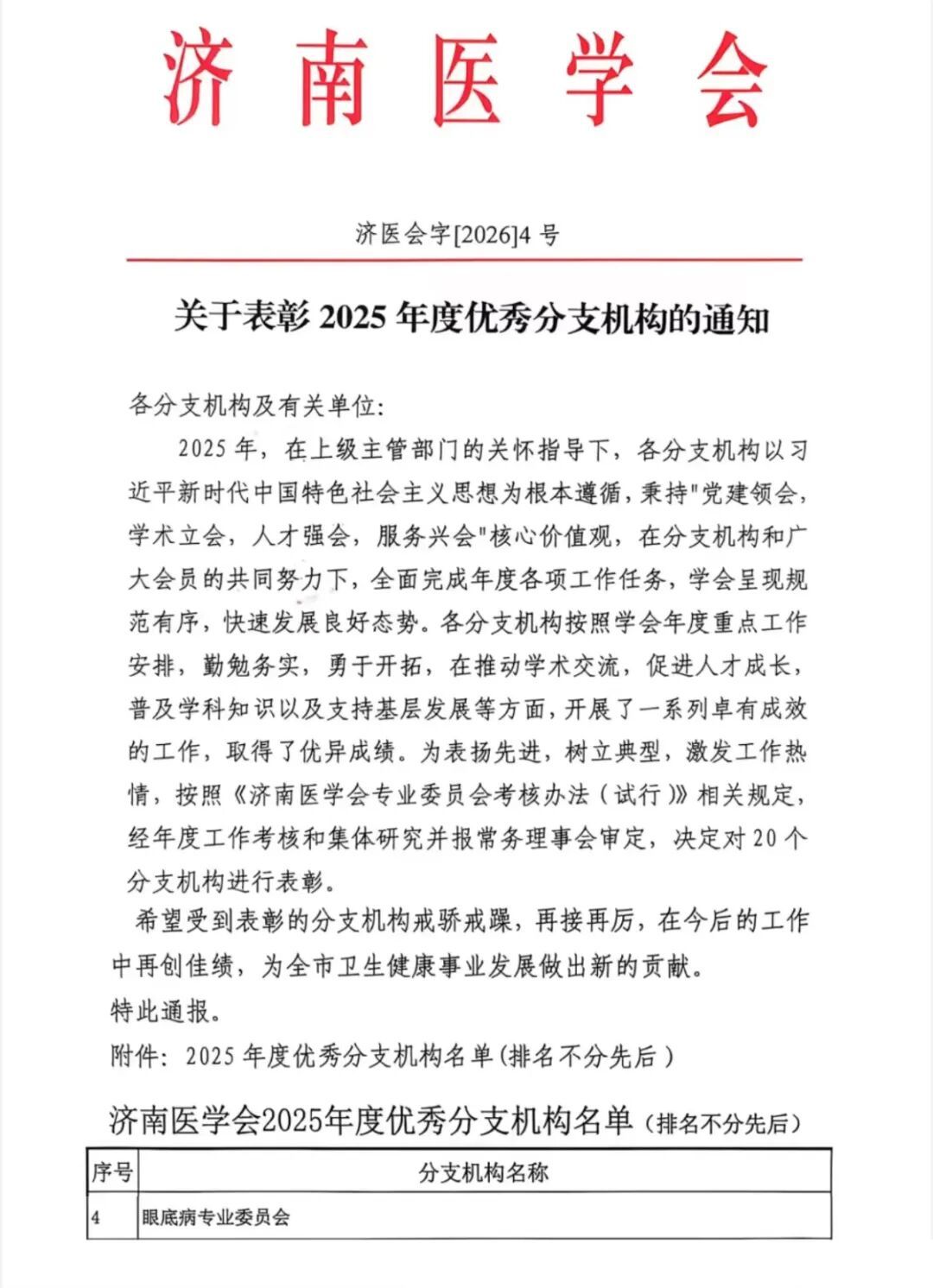 近日,济南医学会2025年度优秀分支机构评选结果揭晓,由济南市眼科医院(济南市第二人民医院)担任主委单位的济南医学会眼底病专业委员会成功入选,这份荣誉是济南医学会对眼底病专业委员会过去一年在学术交流、人才培养、学科普及、基层医疗支持等方面工作的高度认可和充分肯定。