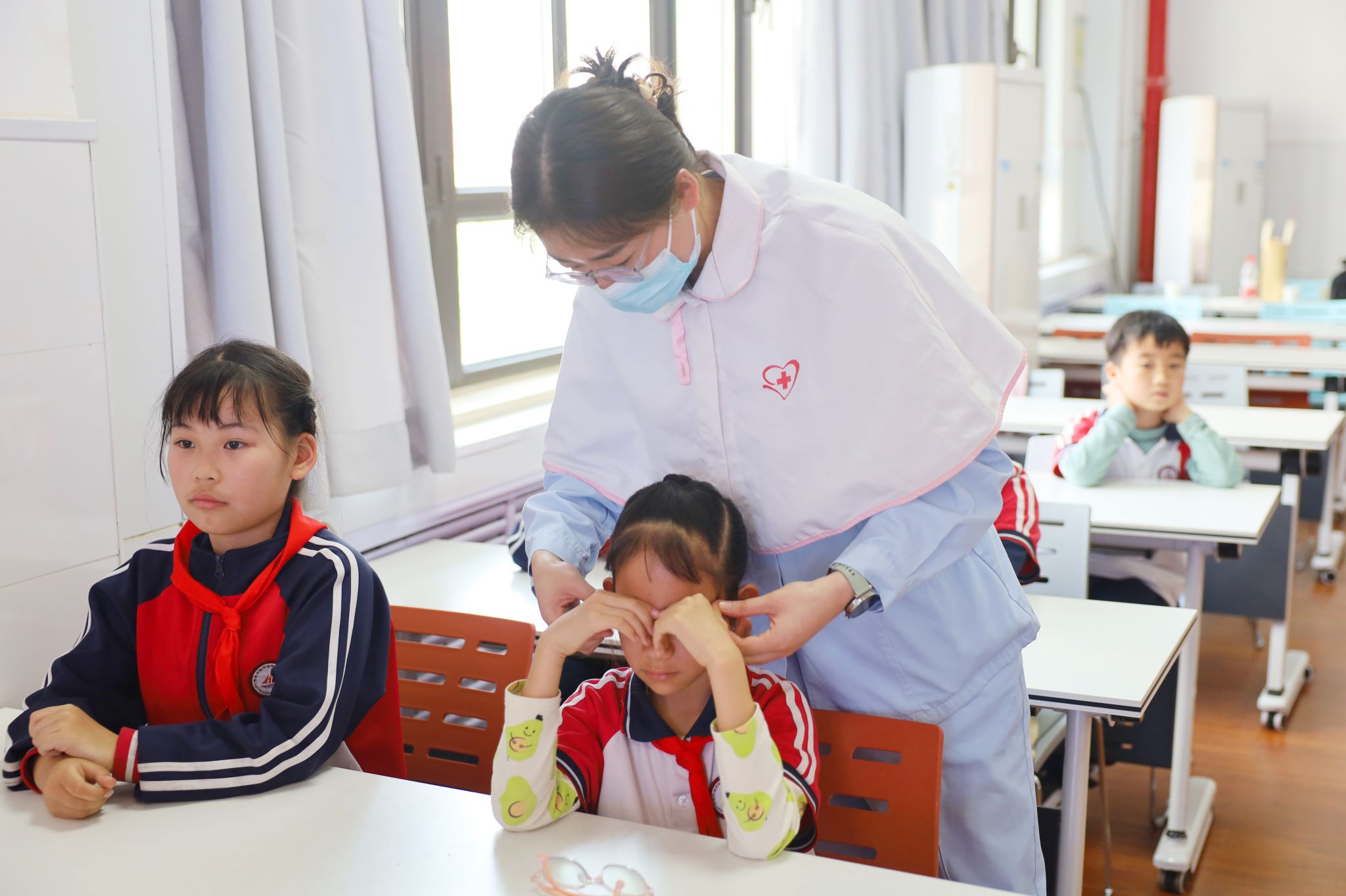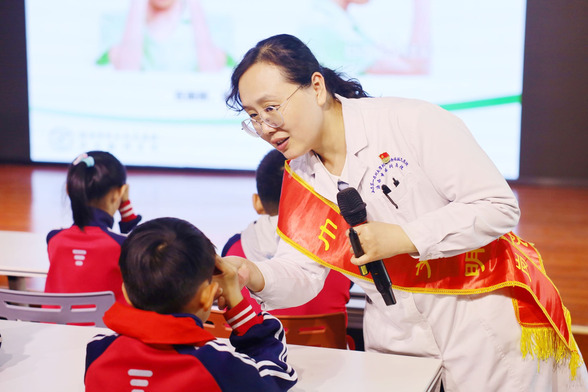 活动中,邓丽娅医师以通俗易懂的语言,向学生们详细阐述了近视的成因、危害以及科学有效的防控措施。她通过生动的案例、形象的比喻和有趣的互动,将枯燥的医学知识变得鲜活,极大地激发了学生们的学习热情。她特别强调了养成良好用眼习惯的重要性,如保持正确的读写姿势、控制电子产品使用时间、增加户外活动等,并现场演示了眼保健操的标准动作,指导学生们准确找到关键穴位,掌握正确的按摩手法,以缓解眼部疲劳。