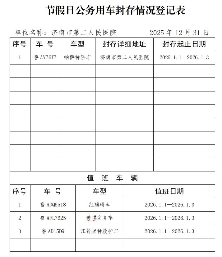节假日公务用车封存情况登记表
