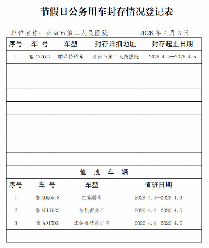 节假日公务用车封存情况